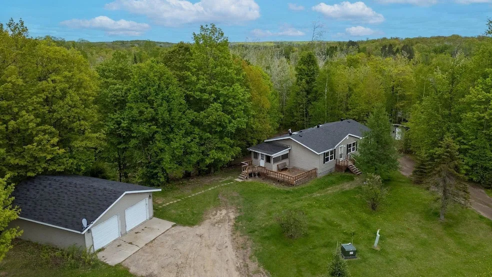 Set on 4.4 wooded acres just south of Grand Rapids, this 3-bedroom, 2-bath Artcraft home offers functional living space and room to roam. The layout includes a large kitchen with center island, dedicated dining area, and a comfortable living room with great natural light. The spacious primary suite includes a full en suite bath and walk-in closet. Two additional bedrooms and a second full bath offer flexibility for guests or home office space. Enjoy the outdoors from the screened porch or back deck, and take advantage of the oversized 2-stall detached garage for vehicles, tools, or hobby space. Updates include a brand-new compliant septic system, newer furnace, and central air. A great option for those seeking privacy, convenience, and value just minutes from town.