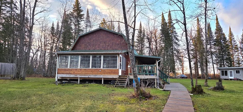 Situated on 1.69 acres along the peaceful shores of Busties Lake, this seasonal cabin offers the perfect northern getaway. With 230 feet of lakeshore on the 213-acre lake, you ll enjoy fishing, boating, and scenic views right from your own 75-foot dock complete with a bench for relaxing. The cabin features two bedrooms plus a loft for extra sleeping space, a wide-open kitchen and living room centered around a cozy propane fireplace, and a spacious sunroom that brings the outdoors in. The well-kept yard is complemented by an insulated shed with power, a small garage, and a dog kennel, while an RV hook-up with electricity adds extra convenience for guests. Whether you re gathering with family, enjoying quiet mornings by the water, or making the most of lake life, this property is a rare opportunity to own a serene retreat in the heart of Minnesota s Northwoods.