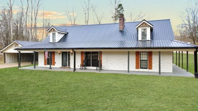 A stunning 5-bedroom, 3-bathroom farmhouse on 2.29 acres in Fulton, MS. This beautifully updated property features granite countertops, new cabinetry, and hardwood & tile floors throughout. The main-level primary suite is a rare find with his and her walk-in closets and his and her full bathrooms for ultimate comfort and privacy. Enjoy the spacious layout, including a large laundry/mudroom, two upstairs bedrooms, and multiple living spaces ideal for family life and entertaining. Step outside to relax on the wrap-around porch or the screened-in back porch overlooking a 30-foot pool with deck. A 2-car carport with workshop space and mature blueberry bushes complete the property.