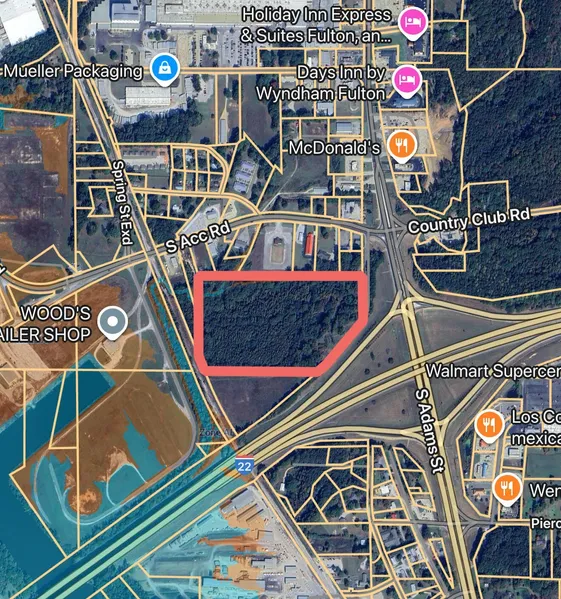 Commercial - I-22 - Fulton, MS! Located at the I-22/S Adams Interchange, this 24.36ac tract is ideal for hotel, restaurant, strip mall, retail!! Seller is a licensed MS Real Estate Agent. All info subject to verification.