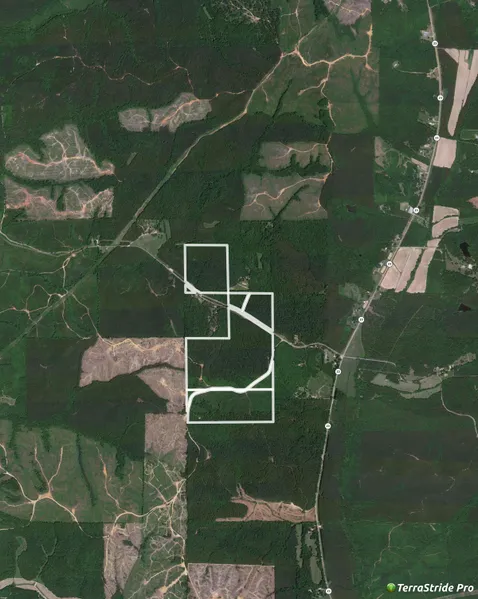220 Acres with good road access and road frontage on 2 sides. Good deer and turkey hunting. Property is on both sides of the road. 160 acres of planted pine plantation, approximately 20 years old and 60 acres of 8 year old planted pines. All info is subject to verification.