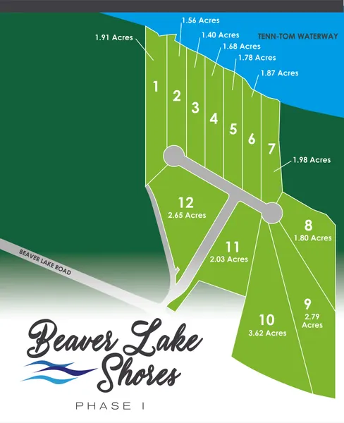 Hurry and get your lot at the lowest price during the Phase 1 Construction of Beaver Lake Shores. This breathtaking area's development is just getting underway and only 7 large waterfront lots are available. Located just south of the popular, but crowded, Pickwick Lake region, Beaver Lake Shores is on the main channel of the Tenn-Tom Waterway and offers sweeping views of the water. Each waterfront lot extends into the water, so the owner can build a pier, boat dock, boat house or even a boat ramp. Don't put off having your lake house any longer. Beaver Lake Shores is where you want to be!