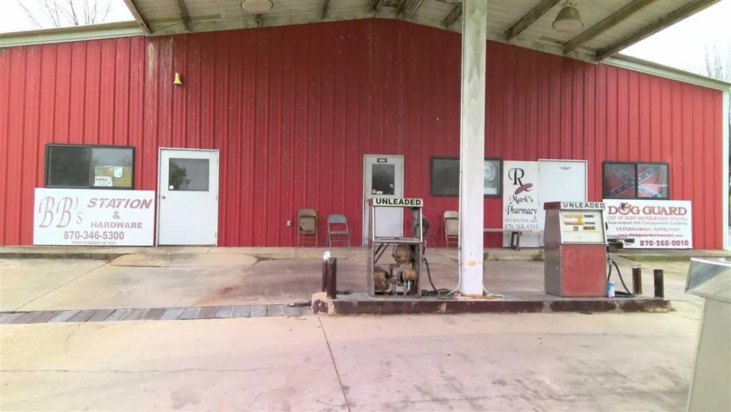 Commercial .50 +/- Acre lot in Mt Pleasant, AR 72561, Izard County with a large commercial service station and excellent main road frontage! This large service station has a nice retail space with an office, working cooler, 2 large bathrooms one of which has a shower, a small commercial use kitchen with a window that could be used for a drive thru, 4 large roll up garage doors, 2 vehicle lifts in like new condition and rated for up to 9,000 lb vehicles, a tire changer, wheel balancer, and an air compressor all of which are included in the price. There is also an upstairs space above the garage which was used as a living quarters. There are 2 central AC units installed as well. Gas pumps on the property are usable with an accessible line to the above ground tank making it easy to maintain. Located on the main highway, this property has great income potential and the space to function effectively. The seller will negotiate further if the equipment included is not desired by the buyer. Don't miss out on this investment! Listed with Mossy Oak Properties, Strawberry River Land & Homes. 870-495-2123. Listing agent, Carrie @ 870-897-7969 for your showing! Equal Housing Opportunity.