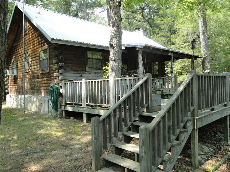This property features a red cedar log cabin surrounded by mile of creek frontage. The cabin has two bedrooms, one bath and a native stone fireplace. Cabin sits above the creek with a nice deck hanging out over the creek. This property is only seven miles from town, but is behind a locked gate for the premier getaway place. The creek is a pristine clean mountain stream fed by large springs. There is a white sand bar by the swimming hole for sunbathing or putting up a volley ball net. If you are looking for a special retreat this is the place. Priced at $148,000