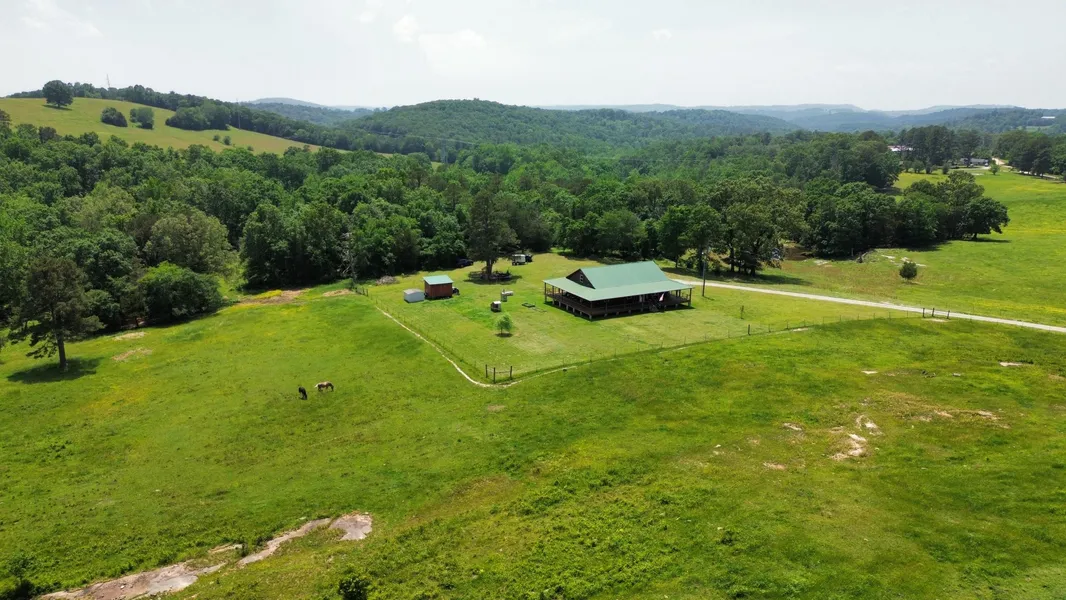 This 4-bedroom, 2-bathroom home sits on 33 acres at 482 Ash Trail in Melbourne, Arkansas. The land is all fenced, with a pond, mostly pastureland, mountain views and plenty of room for animals.