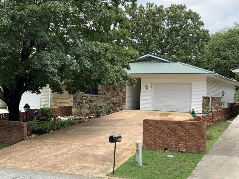 Welcome to the market!! This is a 55 and older community situated in the Horseshoe Bend, Arkansas area. This 2 bedroom 2 bath home sits on a quiet street, has an attached garage, a covered entrance, a nice sitting area on the back side, a large common area with walking trails, and little bridges to walk over. Hence, you never get your feet wet; picnic tables throughout to sit when you get tired and plenty of shade trees to keep you cool! This is all that is at your back door! When you enter the front door of this home, you will see a significant laundry room to your right with plenty of storage and a coat closet, and then down the hall, you have a bedroom with a guest bathroom with a tub/shower combo. Ultimately, you will have the master suite with a walk-in shower! All this sets off to one end of the house. The living room is large and open to the kitchen, which is nice, with ton...