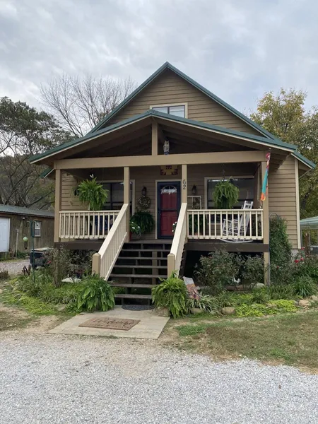 Beautiful riverfront home on the banks of the White River. Located just minutes from Mountain View, Arkansas. This property offers breathtaking views of the river right from the back screened in porch. The house offers anopen floor plan with fireplace and vaulted wood ceilings open to upstairs loft. The second story has a large bedroom area as well as an open mezzanine seating area. Downstairs bathroom has been recently renovated with beautifultile work. Whether you're spending time on the front porch swing or by the fire pit in the back yard, this property will bring tranquility! Property has two carports and a 12X30 storage building. Subdivision has a private ramp for docking boats.