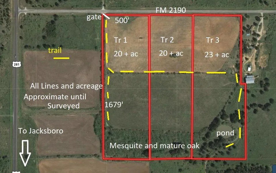 Research Parcel InformationFrom Jacksboro go out 281 towards Wichita Falls for about 15 minutes then right on FM 2190 to property on right.