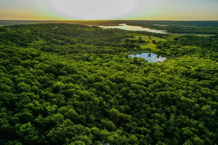 Healing Headwaters Ranch is an impressive lakefront estate located at the end of a dirt road and on Lake Bridgeport's headwaters. This exceptional property can have up to 10 acres of the lake under the surveyed fence line, resulting in a private shoreline. Surrounding sloughs provide excellent fishing habitat, and a private boat ramp is also feasible along the edge. This turnkey ranch was built to entertain, complete with a newly built barndo with AC throughout, a large equipment shed, and eight RV hookups with septic. The jewel of Healing Headwaters is a remarkable, elevated home site overlooking Lake Bridgeport, with a well-built retaining wall and utilities in place. This magnificent land is lush with a variety of oaks and elms. Large pecan trees dapple the fields cut out of the thick brush, providing ideal bedding grounds for wildlife. A few ponds create additional fishing possibilities, with the most remarkable tucked back into a substantial hill in the northwest corner, boasting an incredible rock outcropping overlooking the entire valley.
