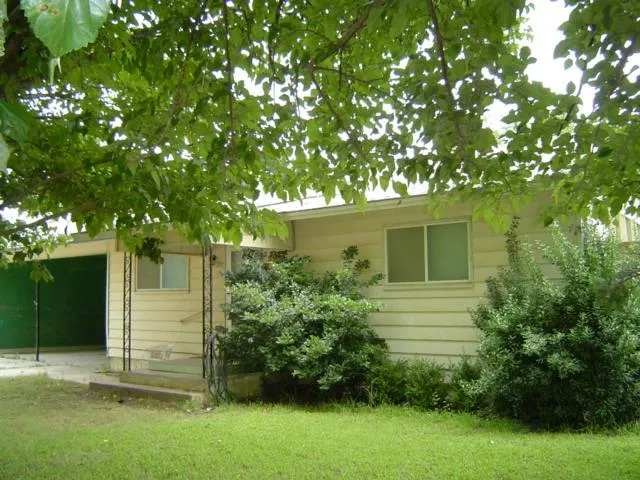 Charming, two-bedroom, one and one-half bath, frame home with siding situated on a wooded corner lot; The living room, breakfast and kitchen areas adjoin; Two-car attached carport; Nice utility room with dryer connections located under the carport; A washing machine connection is located in the kitchen; Central heat/air and hot water heater (gas); Ceiling fans in most rooms; Living room and both bedrooms have carpet; Vinyl floors in the kitchen, breakfast area and both bathrooms; Chainlink fenced back yard with a 8' x 6' storage building; Lots of storage and a linen cabinet in the hallway; The U-shaped kitchen features ample counter work space, almost new Formica countertops, a free-standing white, electric cook stove, lots of cabinets and a water line to the refrigerator for an ice maker; Another storage area is also situated under the oversized carport; Covered patio in back of the house; The master bedroom has an adjoining half bath; This property is well located in a settled neighborhood with several mature trees in the front and back yards (including a peach tree); Well located and within walking distance to the Post Office, City Hall, Churches and Convenience Stores; Easy access to Hwy. 380; Perfect for a couple or small family.