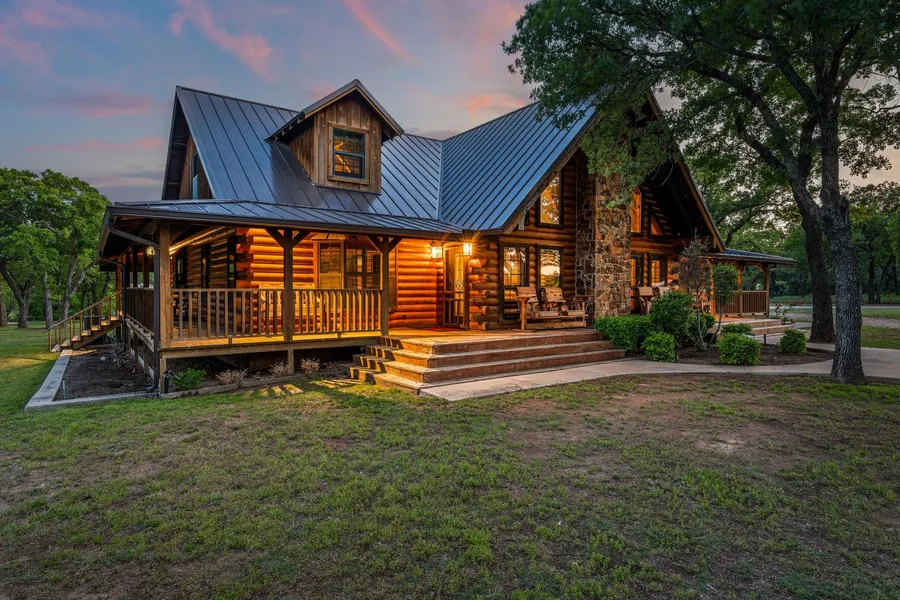 This exceptionally nice property is unique in many ways and will certainly catch your eye with its amazing array of dazzling amenities. This custom built one and half story log home offers the grandeur appearance showcasing the large, pristine windows that overlook the gorgeous grounds of this 91+-acre estate. This rare home is adorned with spacious rooms and the distinctive cathedral ceiling-large fireplace was designed to impress. Open den-kitchen concept allows for unlimited entertaining with an open flow for a crowd, while the oversized island offers even more space for your enjoyment. The exclusive master suite and an additional bedroom and bath are positioned downstairs while the upstairs area sports a crafty multi-use loft, two bedrooms and a third bath. Wrap-a-round porches on two sides, pristine pool, several storage areas, and a workshop are a few of its many features. The prop...