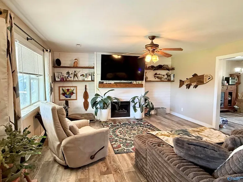 Discover the freedom of country living with this 3-bedroom, 1-bath farmhouse set on 3.04 acres. Tucked away in a quiet rural setting, yet still less than an hour from Huntsville, this property offers space, privacy, and functionality. Enjoy a fenced backyard, with a deck, and a separately fenced 1-acre pasture equipped with electric fencing perfect for animals or hobby farming. A small barn and storage shed provide added convenience, and a cozy gas fireplace welcomes you inside. Whether you're starting out or looking for a bit more room to roam, this property offers a unique opportunity to live the lifestyle you ve been dreaming of.