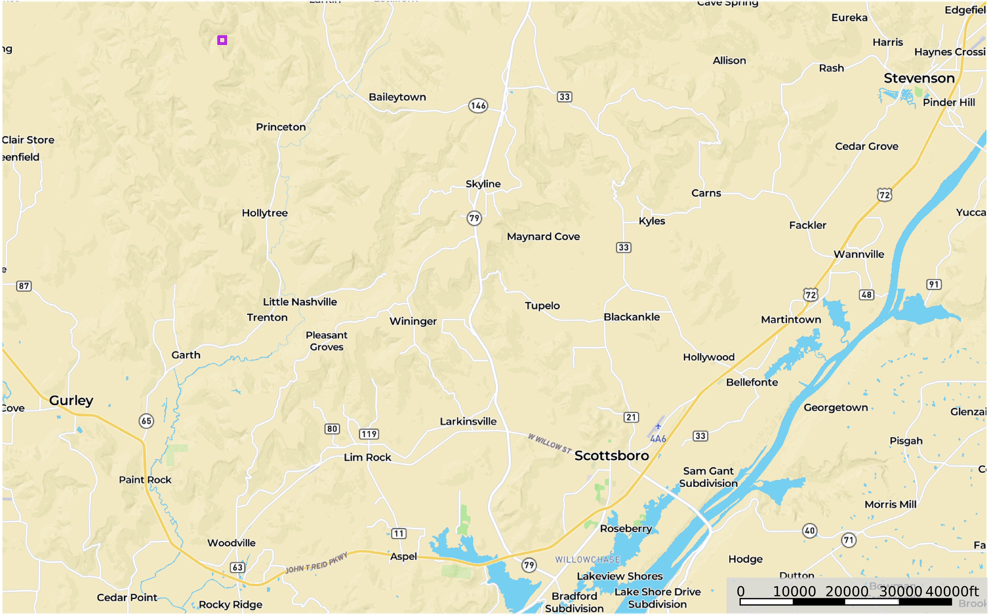 Located in north Jackson County, about 45 minutes from either Huntsville or Scottsboro