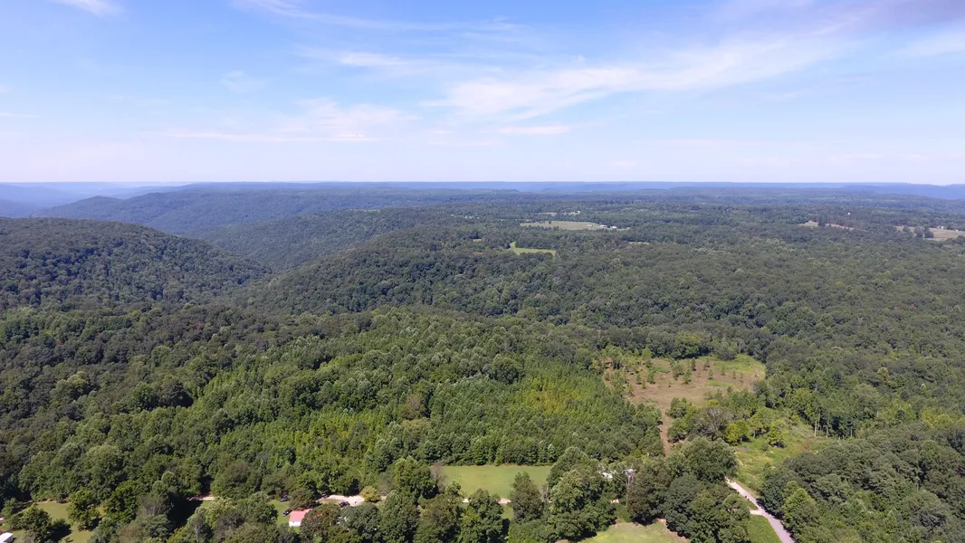 76 acres with 7 to 10 acres open and the rest wooded with hardwoods 15 to 50 years old. There is a 30ft. X 96ft. barn with metal roof and aluminum siding. There is aluminum fence posts partially but not complete on the open land. It has a wet weather spring and stream that stays wet most of the year. It's sloped with fairly level benches for pasture etc. and has a great view of the Paint Rock Valley below. Great deer and turkey hunting.
