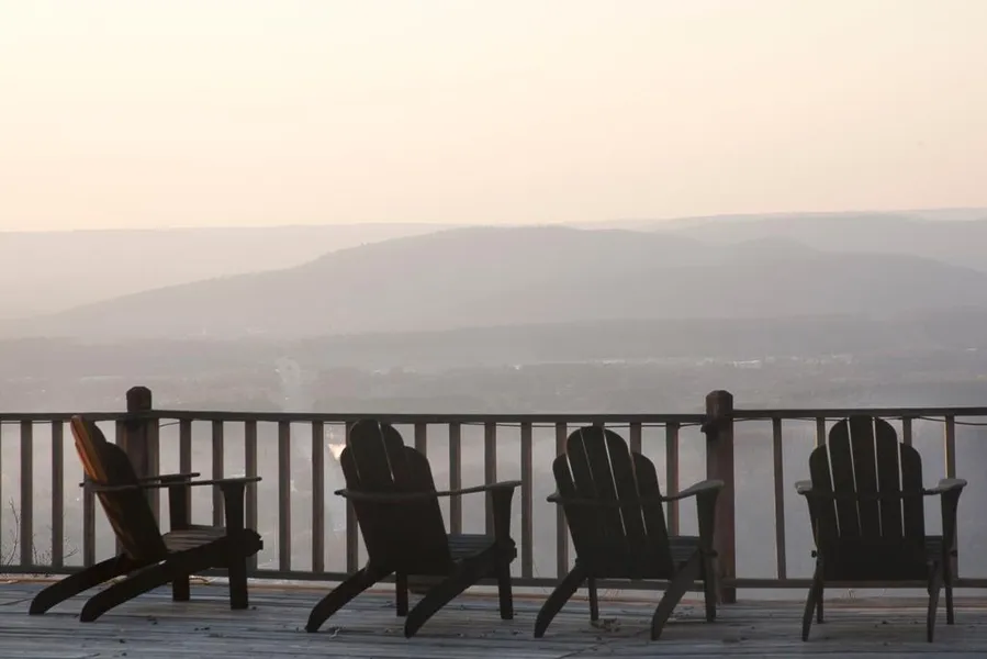 The salt-water pool is easy to maintain. It catches the light of the sunset as the sun dips below the Cumberland Plateau. A cottage garden blooms from spring through fall outside the windows of the breakfast room.