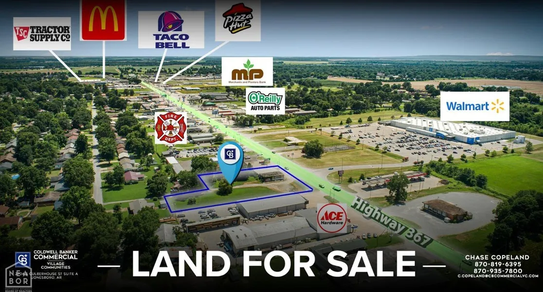 Coldwell Banker Commercial - VC is pleased to offer 1412 & 1414 Highway 367 N in Newport, Arkansas. This 1.2-acre property is ideally situated directly across from Walmart, providing excellent visibility and access along a highly traveled corridor with approximately 9,500 vehicles per day. The existing structure holds no contributory value this is a prime land opportunity with significant potential for redevelopment.