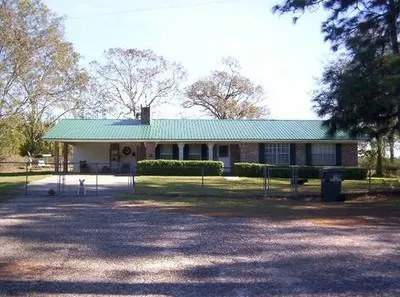 3BR/2.5BA Brick Home Ranch with 10 (mol) Acres. Carport, front porch, screened back porch, fireplace & covered concrete patio. New metal roof in 2002. New central heat & air unit in 2003. Chain link fence around house. 2 Covered Barns with horse stalls and tack room. Natural creek. Highway frontage.
