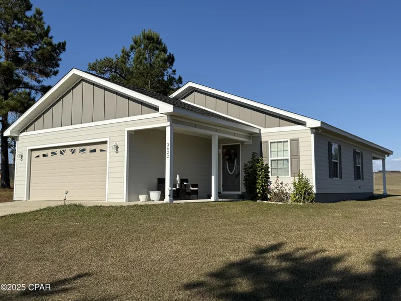 Located in the beautiful and tranquil Cypress Tree Subdivision, this newer construction home offers a perfect blend of comfort, style, and convenience. Built in 2021 and set on a gently sloping hill overlooking the subdivision, the property provides a peaceful setting while remaining just minutes from Downtown Marianna. The exterior features durable hardi board siding along with both a covered front porch and a covered back porch, ideal for relaxing and enjoying the surroundings. Inside, the home offers a spacious open-concept living, dining, and kitchen area highlighted by vaulted ceilings, light neutral colors, and an abundance of natural light throughout. Vinyl plank flooring runs through the space, complementing the granite countertops found throughout the home. The kitchen flows seamlessly into the living area, making it perfect for everyday living and entertaining. This home featur...