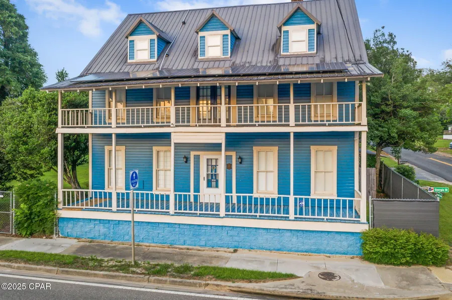 The historic Satsuma Hotel right in the heart of downtown Alford, Fl. is a unique 5,076 sq ft property on a .64-acre lot, grandfathered in as a commercial/residential multi-use building. Currently used as a private residence, with 18+ rooms, including 8 bedrooms and 3 full modern baths and 2 half baths, this versatile space is ideal for use as a boutique inn, event venue, private residence, or live/work setup. Inside, you'll find heart pine floors, restored original cabinetry, a large entertainment hall (15'x46') with antique sliding doors, a spacious pantry, laundry room, modern stainless appliances, and negotiable vintage kitchen pieces. Notable upgrades include a tin roof (2018), solar panels with Tesla battery backup (2020), central HVAC on each floor, Berber commercial carpet, bead board insulation, shotgun-style hallways, and 11' ceilings. The third floor serves as an art studio with additional attic storage potential. Federal grants have funded major infrastructure improvements including a commercial sewage system (to be completed Sept 2025), a city water tower and modern water system (completed Dec 2024), freshly paved roads, and updated street signage. Outdoor features include a fenced yard with two electric gates, a 2-car garage, three porches, ample guest parking, an equipment shed with attached guest bath, and an exterior staircase with a wench for lifting items to upper floors. Make an appointment today to see all this beautiful property has to offer.
