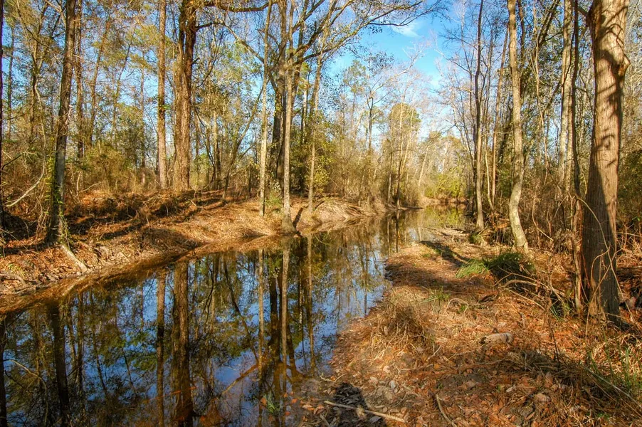 The property is also well-suited to a new homesite and mini-farm, and even as a small recreational property. A creek flows through the land surrounded by mature hardwood and pine, with a small portion of the property also growing a planted pine investment for future income.