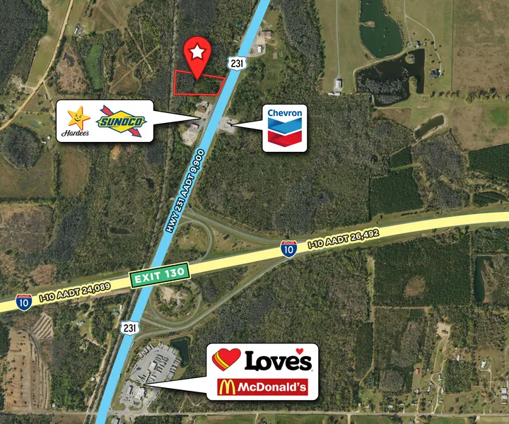 Discover a Excellent 3.348-acre parcel at I-10 & Hwy 231 near Cottondale, FL, perfect for your business. High traffic counts of 22,000 vehicles per day on I-10 and 12,000 on Hwy 231, with the NEW Bay County International Airport driving growth. On-site private well & septic, with city water & sewer available. Don't miss this rare opportunity to capitalize on a strategic location with immense potential. Act fast to secure your business's success!