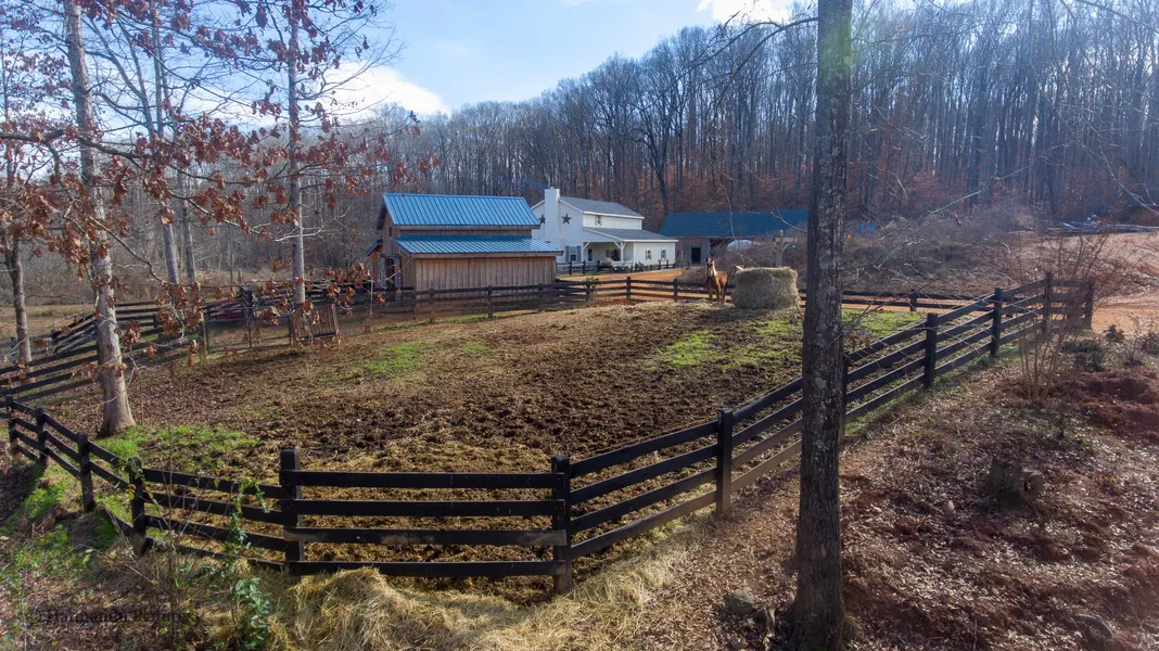 Stunning, one of a kind, hand crafted barn-house with real post and beam and twelve foot ceilings is perfectly situated on a bluff overlooking horse pastures with a meandering stream. Home features heart of pine floors that were harvested and milled on the property. Main bedroom with 2 walk in closets, one has a hook up for a washer and dryer, and a little gym off of the main bedroom. Secondary bedrooms have walk in closets. Nearly 22 prime acres in sought after Jefferson features a craftsman built barn and a workshop with a 6 inch concrete floor and power. There is plenty of room to bring your horses, a lunging arena with a hitching post and cross ties is in place and there is an area cleared for a full size arena with 100 amp power and water already in place for the arena and future barn. Paddocks with four board fencing. The property has a perfect spot cleared for a larger house with views of the Smoky mountains visible on a clear day and a home site with wooded, wetland views. All of this is accessed down your 1/2 mile private driveway that crosses a spanning wooden and steel bridge. Perfect location for a gentlemen's farm or division for multiple estate homes, all utilities are available. Privacy and beauty in a tranquil setting. Convenient to schools, shopping and interstate.