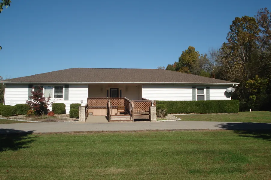 Previously serving as a group home, this property has been vacated and will need some remodeling. But, with a little money come big reward with 6 bedrooms, 2 full handicap baths, a half bath and wide open great room design. Sitting on over 5 acres, the fenced back yard includes a gazebo and extended deck. Even though the garage was converted to 2 bedrooms, the large 20x40 pole barn will fill that void. Ample back yard parking for 6 or more vehicles. Just outside of town, come roll up your sleeves and put down roots and make this large family compound your own.