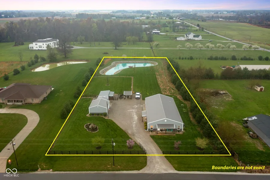 Searching for a home in a rural setting but close to town? This gorgeous 2016 pole barn home with 1900 sq. ft. of living space and a 3.5 car attached garage on 1.79 acres that is completely fenced with separate fenced area for animals will check all your boxes!Outside features include a 24x24 detached garage with 18x8 overhead door, 21x15 barn/workshop with dog kennels, two 12x15 covered patios, a covered porch, with a half acre pond that is fully stocked!The home boasts three bedrooms, two bathrooms, a primary suite with a private bath and HUGE walk-in closet, a separate home office, and unique features like repurposed metal tin ceilings, unique lighting fixtures, custom built in shelving , sliding barn doors, 9 ft ceilings, energy star rated HVAC , and storage space galore! Don't miss out on this one-of-a-kind property located near Leslie Lake, just a few minutes from town! Delayed Possesseion due to Seller building a new home.