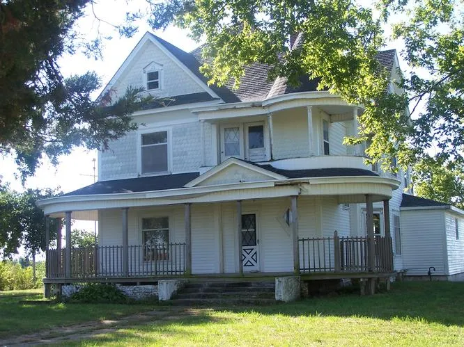 Big and beautiful stately home built to last - large rooms, original w/b fireplace in family room, formal DR, formal LR, large kitchen, large utility room off kitchen. Ornate open stairway in entry PLUS ornate stairway from 2nd level to floored attic. Also, maids stairway into kitchen. Large sleeping porch, newer wrap around porch in good condition. Older barn in rough condition, circle driveway around home on 5.74 A m/l w/mature trees. Great street appeal, just 1/2 mi. off Hwy. 75 but still a very country feel. Would make a great opportunity for the handy man - house would be awesome w/repairs.