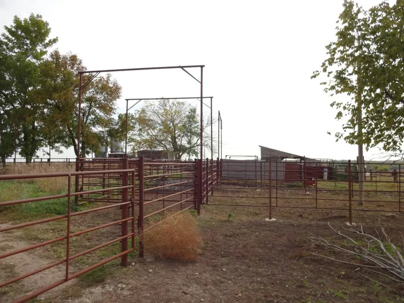 Location Location Location: Consider the long term assets this property offers with access to Hwy 75 and nearby Holton. Perfect set up for cattle, complete with working pens and alley. High % Pawnee soils and lays well enough to be tilled. Old house still has some salvageable woodwork. Tree lined draws contain some good hardwood timber. Bulk bins, working tub/chute do not convey.