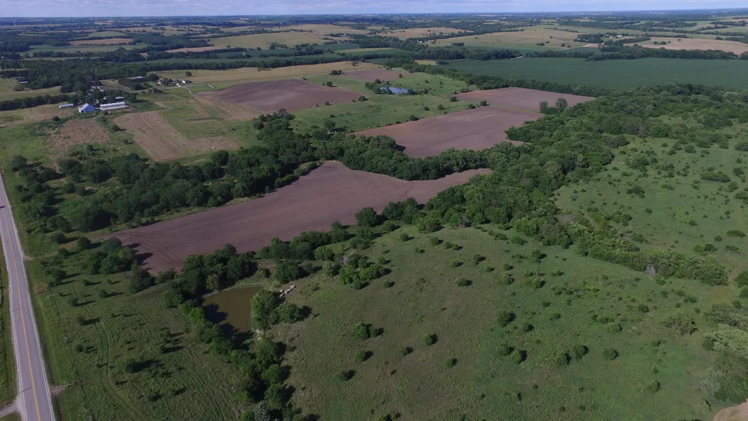A great opportunity to grow and expand the current farm operation on this diverse, mixed use property. This farm is complete with nearly 60 acres of tillable ground and 95 acres of pasture/timber. The tillable ground will offer nice income or rotational grazing. Pasture is fully fenced and features numerous cross fences and 2 nice ponds for your live stock. There are numerous outbuildings including workshops, loafing sheds, Morton building, equipment sheds and a large hay barn. Plenty of watering options with rural water and 2 wells including 4 hydrants and 2 heated waterers. With food, water, and habitat, this farm offers great hunting opportunities. The timber is littered with trails and big rubs. Multiple areas along the creek and fields offer excellent setups for deer and turkey hunting. A quick look at the drone footage and aerial photos and it is evident that there are major funnels and nice bedding areas. All around great habitat for white tail, turkey and upland hunting. There is also 1/2 mile of highway road frontage and good access to all areas of the property.