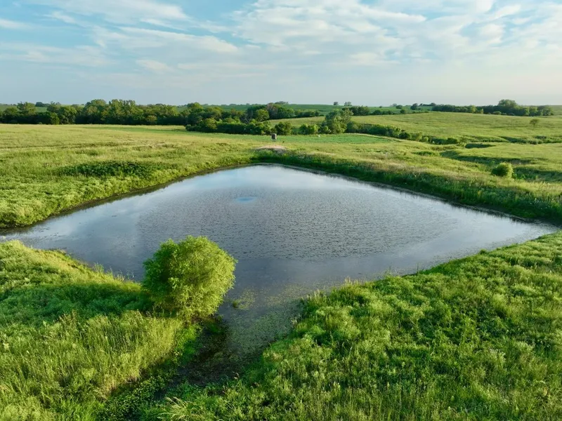 Enjoy hilltop views and rolling prairie grasses on this pristine 93 m/l acre native pasture. This southern Jackson County farm, only 8 miles from Topeka and a half mile from 75 Hwy, has proven quality deer hunting, will make a wonderful build site, or can be a nice addition for your cattle operation. 32 m/l acres are set aside for pasture and there are thick draws and native grasses for deer to bed and channel through. A newly placed cross fence keeps the cattle operation and deer hunting separate. There is a 3 m/l acre food plot planted with Real World Generation 2 soybeans and a fall turnip blend. Find a private, fully stocked pond loaded with bass and crappie. The pasture is very well kept and equipped with quality fencing throughout. A Banks Stump 4 Blind was installed to overlook the food plot and enhance the rifle or bow hunting experience. Supplemental feeding with a 600 pound All-Seasons Feeder is also included with the property. Review the multiple mature buck trail camera photos. This is a proven whitetail hunting property with a recently harvested buck pushing 170 inches. Wild turkeys also frequent the property throughout the year. Explore your options and make it your own! Additional acreage available.