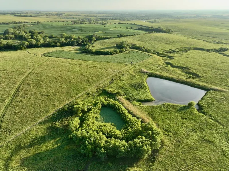 Enjoy hilltop views and rolling prairie grasses on this pristine 82 m/l acre native pasture. This southern Jackson County farm, only 8 miles from Topeka and a half mile from 75 Hwy, has proven quality deer hunting, will make a wonderful build site, or can be a nice addition for your cattle operation. There is a winding thick timbered draw and tall native grasses for deer to bed and channel throughout the property without breaking cover. A newly placed cross fence keeps the cattle operation and deer hunting separate. There is a 3 m/l acre food plot planted with Real World Generation 2 soybeans. Find a private, fully stocked pond loaded with bass and crappie. The pasture is very well kept and equipped with quality fencing throughout. A Banks Stump 4 Blind was installed to overlook the food plot and enhance the rifle or bow hunting experience. Supplemental feeding with a 600 pound All-Seasons Feeder is also included with the property. Review the multiple mature buck trail camera photos. This is a proven whitetail hunting property with a recently harvested buck pushing 170 inches. Wild turkeys also frequent the property throughout the year with giant cottonwood roost trees located on the land. Explore your options and make it your own! Property to be surveyed. Additional acreage available.