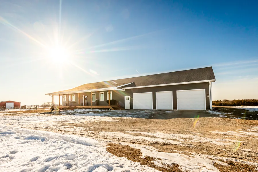 This reverse ranch-style house sits on 11 +/- acres near Soldier, Kansas. Built in 2023, it boasts 4 bedrooms and 4.5 bathrooms with 1 office/schoolroom and over 5,000 square feet. It has an open-concept main floor with large covered porches and a walkout basement. The house has PEX plumbing, Rockwool insulation, impact-resistant shingles, Anderson windows, 9’ ceilings on the main level, custom cabinets, granite countertops, a walk-in pantry, and hardwood floors. The basement has a massive family room, multiple storage rooms, and a concrete safe room. There is a three-car attached garage along with a large workshop area. Utilities include electric, rural water, lagoon, and high-speed internet. The 30'x70' outbuilding has spray foam insulation with an additional kitchen, dining room, bedroom, and full bathroom. The property has fencing on two sides along with a corral, pens, and chicken coop. Contact Trent Siegle at (620) 767-2926 for additional information, disclosures, or to schedule a showing.