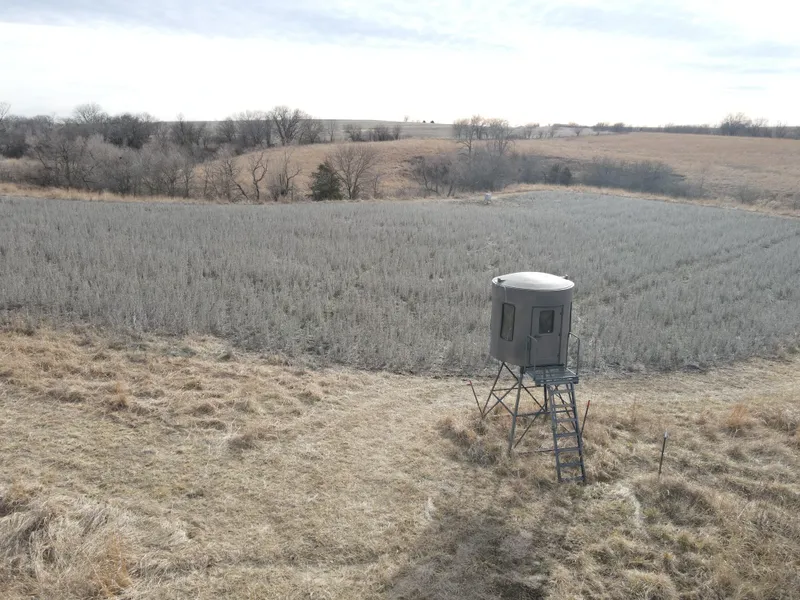 Enjoy hilltop views and rolling prairie grasses on this pristine 93 m/l acre native pasture. This southern Jackson County farm, only 8 miles from Topeka and a half mile from 75 Hwy, has proven quality deer hunting, will make a wonderful build site, or can be a nice addition for your cattle operation. 32 m/l acres are set aside for pasture and there are thick draws and native grasses for deer to bed and channel through. A newly placed cross fence keeps the cattle/hay operation and deer hunting separate. There is a 3 m/l acre food plot planted with Real World Generation 2 soybeans and a fall turnip blend. Find a private, fully stocked pond loaded with bass and crappie. The pasture is very well kept and equipped with quality fencing throughout. A Banks Stump 4 Blind was installed to overlook the food plot and enhance the rifle or bow hunting experience. Supplemental feeding with a 600 pound...