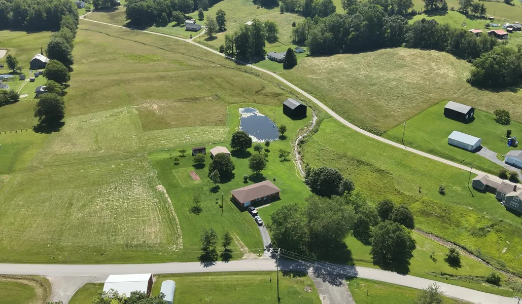 Located at 54 Kelley Road McKee, Kentucky: A rare find in a great location! You will love all this property has to offer, well maintained brick home that features 3 bedrooms, 1 bath, spacious living room, eat in kitchen, full basement, heat pump, 1 car attached garage, 2 car detached garage, 12' X 20' storage building, barn, nice pond, all situated on 14 acres, Priced at $450,000.