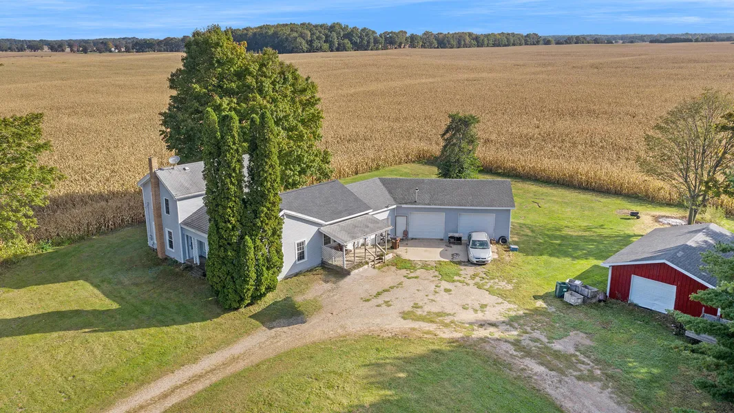 Great farmhouse, large level lot, great for gardening. Covered front & side porch for enjoying nature w/ a morning coffee. Spacious kitchen, lots of cabinets, counter space & room for dining. 20X17 living room, main lvl master bedroom, 2nd bedroom more recently used as a craft room. Full bath w/ laundry on the main floor, oversize mud room that opens to the massive attached 3+ car garage w/ extra room for hobbies, tools & storage. 2nd fl is the 3rd & 4th nice sized bedrooms. Basement w/ outside access, updated high efficiency furnace, water heater, pressure tank, owned water softener & breaker panel. Also featuring updates to the roof, siding & windows. The pole barn is 24x32 & ready for your toys & hobbies! Updated in all the more expensive areas but still needs some TLC. Priced to Sell!