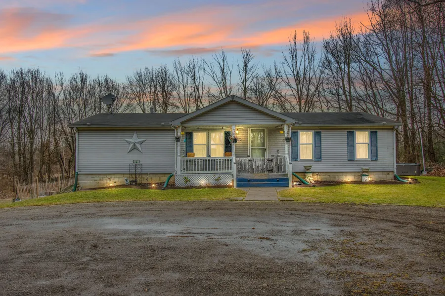 Welcome to this ranch home on 13 acres, mostly wooded. This home features 3 bedrooms, 2 bathrooms, updated flooring upstairs, and a full basement. The open concept between the kitchen and living room is perfect for having guests over. There is a covered porch and a rear deck as well. There is a nice bonfire pit, outdoor bar with power, and camping site in the middle of the property. Appreciate the trails throughout the property, mature trees/pines, and the abundance of wildlife. Come make this hidden secluded gem yours today! It is the responsibility of the buyers/buyer's agent to verify all information. All information is deemed to be accurate.