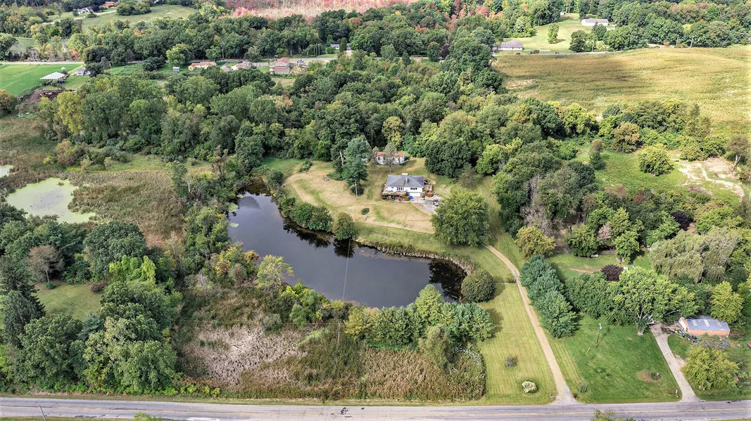 This Ranch home is sitting in the Northwest school district; Must-See Property! Features include but not limited to, 2 sprawling decks with handicap accessibility, open floor plan featuring dual sided stone fireplace in the large living & dining rooms. The kitchen offers wrap around counter space w/ ample cabinetry. Enjoy 4 spacious bedrooms w/ lots of closet space & full bathroom all on the main floor! The partially finished walkout basement offers a den, rec area, large utility/ laundry room, 2nd full bathroom & family room that opens to a covered patio. Large 2car attached garage w/ workshop! The rolling yard, giving space for all kinds of activities, gardening & nature, large pond great for wildlife or fishing, 27x48 pole barn & small livestock barn for a hobby farm! 10 acres!!