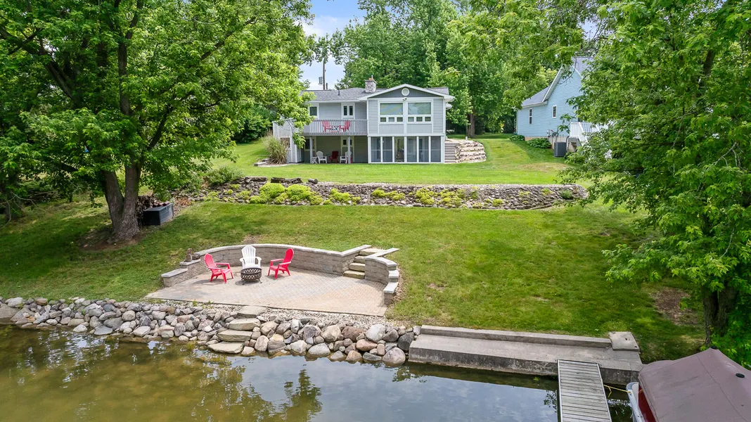 Lake Columbia! Beautifully maintained & updated throughout, 3bedroom, 2bath lakefront home w/ 93' of lake frontage. Enjoy this truly open floorplan. Modern kitchen featuring granite countertops, marble backsplash, & stainless steel appliances. Walkout lower level features excellent views, a spacious family room, wet bar w/wine refrigerator, 3rd bedroom, full bath & laundry/ utility/ storage room. Screened in porch & covered patio +storage shed. Seawall & new beautiful lakeside yard patio, perfect for lounging or an evening bonfire, newly added, landscaped mid-yard retaining wall making the yard functional for all your entertaining events & activities. New roof 2016. Included 30' dock & boat lift. 3car garage, room for all the toys, or many other uses for hobbies.