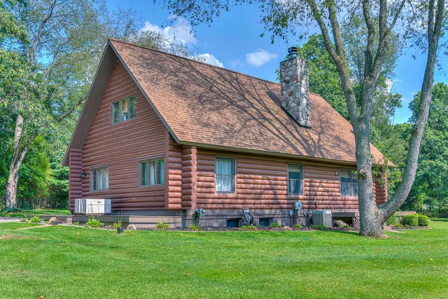 Situated on 9 Beautiful Acres you will find this Americana Log Home offers 4BR/2BA, with brand new wrap around deck! 2.5+ Car Garage, 30x60 Barn w/a new 10x40 lean-to. Great set up for horses, goats, etc. Chicken Coop can stay. The main level offers 2BR, home office, updated Bathroom, Gourmet Kitchen w/granite counters, island, stainless appliances that opens to dining room , living room w/wood-burning fireplace. Wood & Travertine Floors. 2nd Level includes 2 more BR's, full bath. Basement has a nice family room, laundry room w/loads of storage. Exterior of Home Sealed & Stained in 2022. New Roof on Barn 2017. Septic Pumped 2018. Close to Dahlem Center, Jackson Country Club, shopping & restaurants; yet tucked away on 9 peaceful acres!