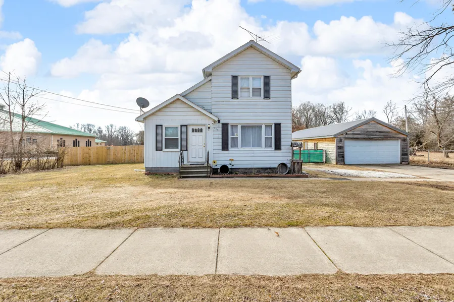 Your new home is finally here! Featuring a remodeled main floor for an open concept, updated kitchen with quartz counter tops, new appliance package, ceramic tile flooring and a remodeled bathroom featuring a freshly tiled shower & quartz vanity! Main floor also features hard wood floors, large windows allowing tons of natural light and a bedroom with 2 bedrooms upstairs both having walk-in closets! Additional features include a new electrical panel and new wiring throughout, new sump pump & bladder tank, 2 FULLY FENCED IN ACRES with privacy fencing closer to the house to enjoy your MASSIVE back yard and above ground pool which has a deeper middle! 4 car garage with concrete floors, metal roof and dual access from both front and back, back portion having ceilings high enough for a hoist! Additional shed out back does have electrical. Did I mention it's just seconds away from Center Lake'...