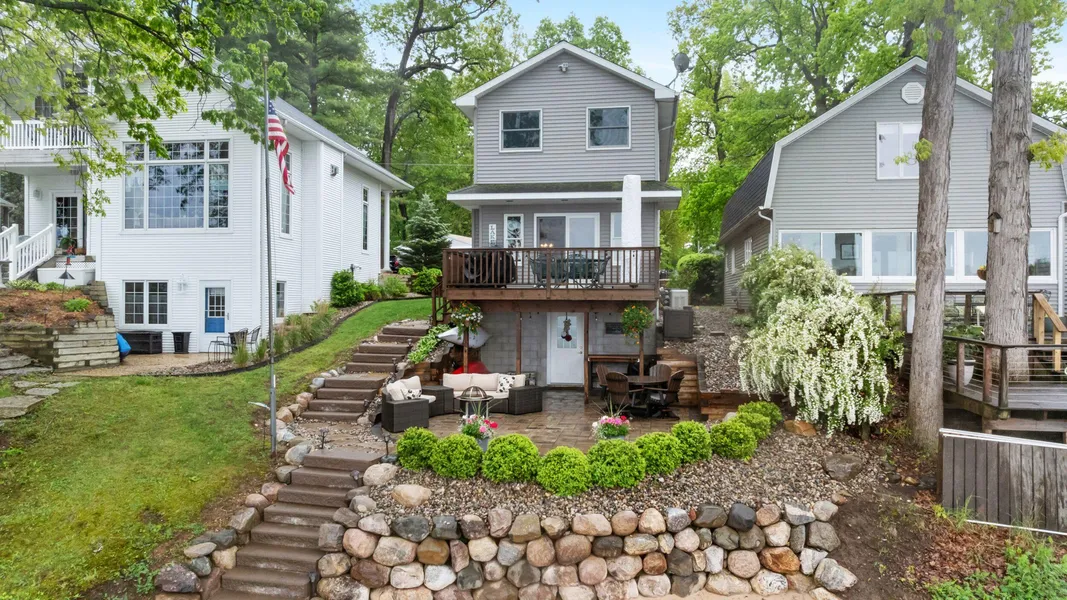Nestled on the highly coveted shores of Pleasant Lake, 1548 Indian Trail presents an unparalleled investment opportunity for the discerning buyer. This turn-key, completely remodeled property is primed to be a lucrative weekend rental on platforms like Airbnb, boasting a prime location steps from Hankerd Hills Golf Course and on a lake renowned for its pristine sandy shores, exhilarating all-sports activities, and exceptional fishing. Adding to its immense appeal, this property also offers ample extra parking and, a significant bonus, a full barn across the street providing all the storage needs for lake toys, recreational vehicles, or even potential income-generating space. No expense was spared in transforming this lakeside retreat. The exterior showcases an extensive, top-of-the-line interlocking paver patio system - a true masterpiece of lakeside design that looks as if it stepped right out of a Pinterest board or magazine, offering an idyllic setting for outdoor gatherings and relaxation. Inside, the home continues to impress with a designer kitchen featuring stunning hard stone white counters, superior cabinetry, and all-new appliances. Solid oak doors throughout speak to the quality craftsmanship. A newer fireplace adds warmth and ambiance, while the walkout deck provides breathtaking, mind-blowing sunset views over the lake. Upstairs, vaulted ceilings and beautifully refinished rooms create a modern aesthetic, all while delivering incredible lake views. The partially finished downstairs offers a fantastic sleeping space with tall ceilings and direct walkout access to the main patio area. This home is equipped with a host of modern amenities, including an on-demand hot water system, a newer furnace, and a top-of-the-line water softener, ensuring comfort and convenience year-round. Boasting arguably the most turn-key status on Pleasant Lake, with its incredible lakefront amenities and valuable additional parking and barn storage, is ready for your future investment success or immediate family enjoyment. Don't miss this rare chance to own a piece of paradise on Pleasant Lake!