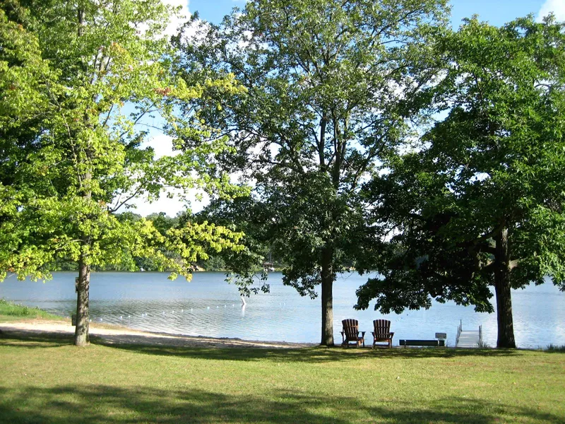 Level lot with views of the lake has been cleared, build your dream home or spend time by the fire pit and enjoy access to the beautiful lake. Private all-sports lake (no jet skis) with an Up-North feel has beach area with pavilion, swim area, playground and volleyball. Spend a day relaxing or fishing along the shoreline adjacent to the park. A great opportunity to be part of a private lake community! Agent is owner.