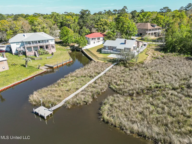 STUNNING WATERFRONT HOME IN OCEAN SPRINGS. This 4 bedroom 2 bath home has many custom features. The kitchen has stainless steel appliances, butcher block island and granite countertops with custom cabinets. In addition all appliances remain with the home including washer and dryer. The entire home has a new water filtration system. The open living area has vaulted ceilings, custom built-in cabinets, roll down privacy shades and updated light fixtures with recessed lighting. The main bedroom has french doors that open onto the deck. The on suite has been completely updated with ceramic tiling throughout, including the walk in shower. In addition new cabinets, countertops and lighting have been updated. There is laminate flooring throughout. All of the outside decking and pier have been constructed with composite planking. The pier features boat dockage with deep water access.Some of the m...