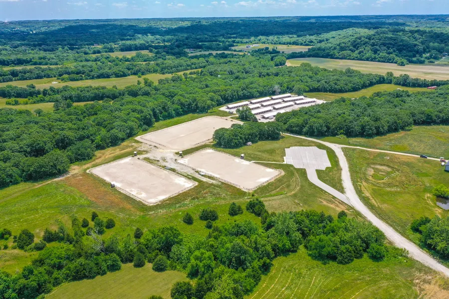 INCREDIBLE BUY on MAJOR HORSE PROPERTY just east of Kansas City! Almost new facilities on 45 acres cost $2 million to build and includes: 10 barns with 20 stalls each (200 total), three massive outdoor sand arenas, office, concession stand, announcer stands, bleachers, pasture/trailer parking, private drive, picnic area, treed perimeter. Perfect for boarding, training, horse shows, raising any kind of livestock. Seller's loss is buyer's gain. Wifi access throughout the property, power and water to each barn. Oak stalls are 12 x 12, matted, with ventilation, outlets for fans, metal doors. Designed with attention to detail, this picturesque property has tons of potential! Arenas include: 200 x 400 warm up arena & two 175 x 275 competition arenas. Located a few minutes south of I-70 at the Oak Grove exit.