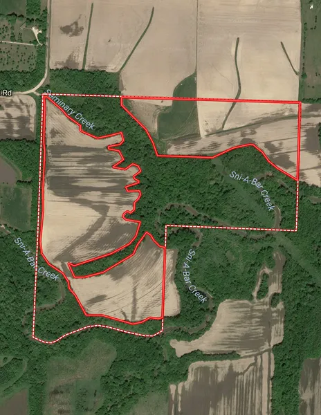 Cropland: This Jackson County, Missouri property is located just 2.25 miles north of I-70 at exit 28 (Oak Grove, MO), which is directly east of Kansas City and consists of 62+/- tillable cropland acres and 51+/- acres of timber and creek. There is a nice variety of hardwood timber which surround the Sni-A-Bar Creek and the Seminary Creek areas and outline the crop fields of this Jackson County, Missouri farm making it a true Midwest region farm. The cropland consists of three row crop fields and two smaller alfalfa and grass fields which are located on the north side of the property.