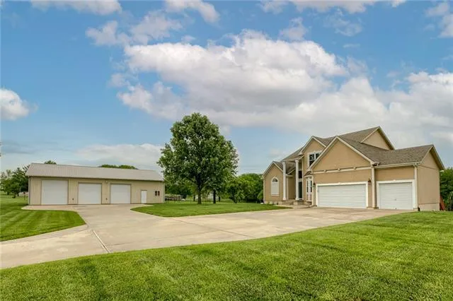 "Country" living doesn't get better than this! Plenty of space in this 1.5 story home situated on 5 acres. Spacious great room opens to breakfast area and kitchen. Primary suite with large bath and walk-in closet. Upstairs bedrooms all have private access to baths. If that's not enough room, finish the walk-out lower level to suit your needs. The lower level has a utility sink and a sauna! The 60 x 40 outbuilding has a private office great for working from home or your small business, a storage room, a 14' x 40' loft area for storage and room for up to 6 vehicles. 11' high door for the RV and 2 other 10' high doors for your boat, ATV's and more! Enjoy viewing the wildlife from your deck.