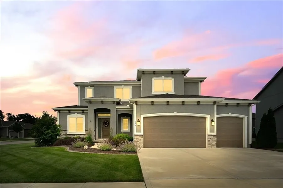 Located in the highly sought-after Ridgewood Place at Chapman Farms neighborhood and within the award-winning Lee’s Summit School District, this immaculate 4-bedroom, 3.5-bathroom home offers 2,427 sq. ft. of thoughtfully designed living space. Situated on a flat corner lot, the home boasts a 3-car finished and insulated garage and is packed with premium features, including soaring 12-foot ceilings in the living room and kitchen, motorized shades, under-cabinet lighting, and Frigidaire Gallery appliances with a gas range. Every room is equipped with ceiling fans, and the home is fully wired with Cat6 cable for modern connectivity. The basement is already stubbed for a full bath and bar and includes a sump pump with battery backup. Enjoy luxurious details like custom ceiling design in the master bedroom, a vaulted ceiling in an upstairs bedroom, a whole-home humidifier, a smart thermostat, and a convenient plug in the office closet for a vacuum or printer. The professionally landscaped yard includes a sprinkler system, and a built-in Christmas light package with outlets in the eaves and an interior switch for easy holiday decorating adds the finishing touch to this exceptional home.