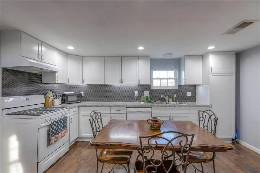 Fall in love with this move-in-ready gem perfectly situated in South Kansas City! This adorable bungalow offers a beautiful blend of classic charm and modern updates, starting with a warm and inviting living room bathed in abundant natural light and featuring plush carpeting. The heart of the home is the thoughtfully updated eat-in kitchen, which boasts elegant wood flooring, recessed lighting, and crisp, white ceiling-height cabinetry that maximizes storage alongside Granite countertops. The kitchen walks out to the deck that wraps around to the back of the house. Relaxation awaits in the fully updated bathroom, complete with designer ceramic tile flooring and ceramic tile for the shower-over-tub. Both bedrooms are generously sized, offering quiet sanctuaries with soft carpeting and a peaceful atmosphere. For those who love the outdoors, the private deck overlooks an expansive 3/4 acre ...